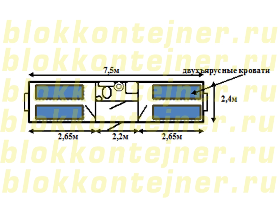 Блок - контейнер  БК 7,5*2,4*2,5 - 1шт. жилой на 8человек